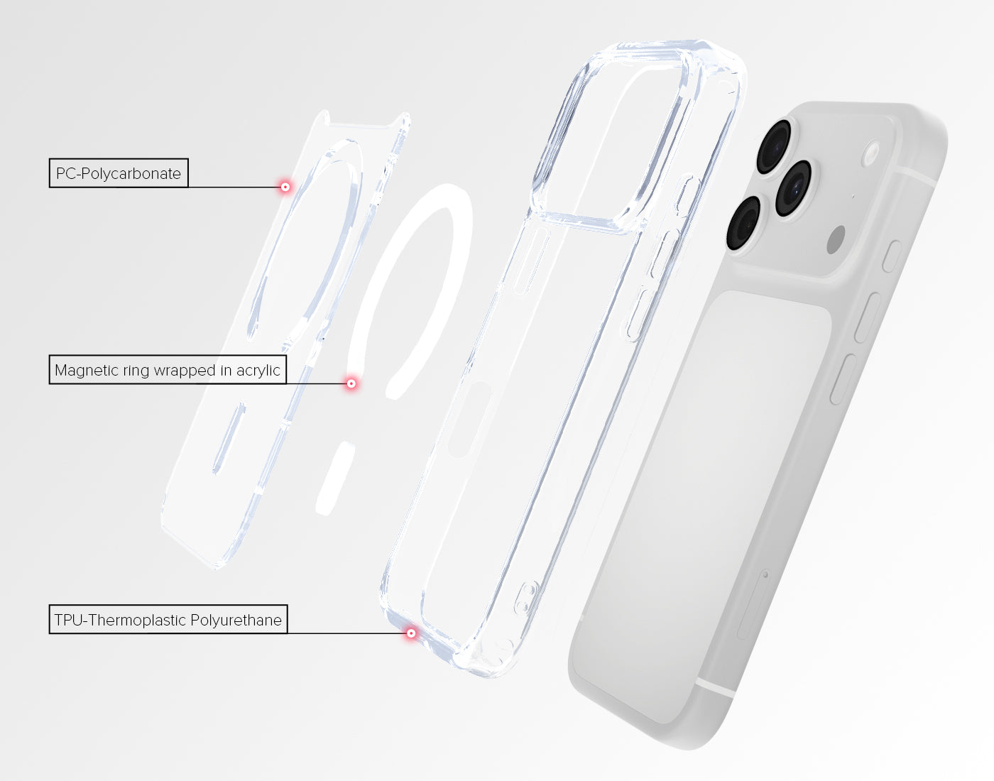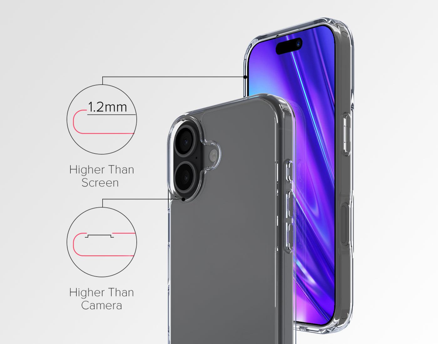 The sleek and transparent DualPro Case provides almost invisible protection for your iPhone. This ultra-thin case features corner impact bumpers for drop protection and a MagSafe compatible N52H magnetic ring allowing you to effortlessly connect to your favorite MagSafe accessories. With its slim design and precise fit, it provides ultimate scratch and drop protection while showcasing the stunning design of your iPhone.
