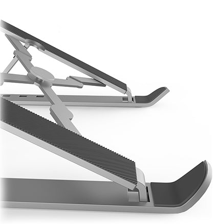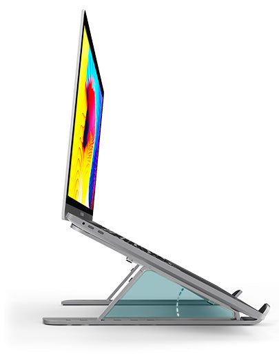 Le XStand ultra compact est un support élévateur pratique qui élève votre ordinateur portable à un angle plus ergonomique, contribuant ainsi à réduire la fatigue du cou causée par le fait de regarder votre ordinateur portable pendant de longues périodes. Le design pliable et fin s'ouvre en forme de X et élève votre ordinateur portable à l'angle souhaité de 15 degrés à 45 degrés, réduisant ainsi la pression sur votre cou et augmentant le flux d'air de refroidissement sous votre ordinateur portable. La conception en alliage d'aluminium durable et léger comprend des coussinets antidérapants en silicone pour maintenir votre ordinateur portable ou votre tablette en place et peut être utilisée avec n'importe quel appareil jusqu'à 17 pouces.
