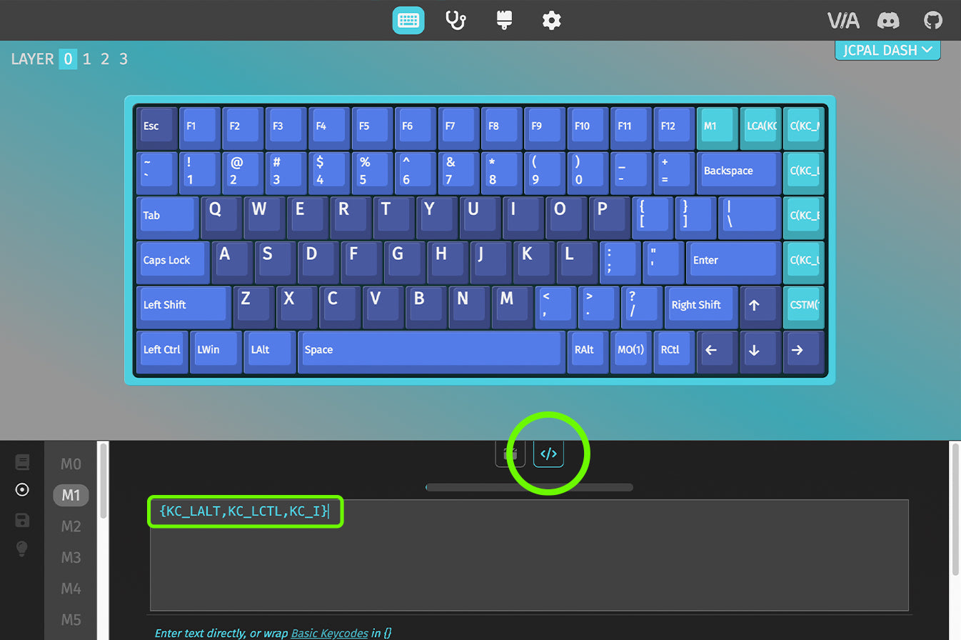 VIA Code copied: {KC_LALT,KC_LCTL,KC_I}