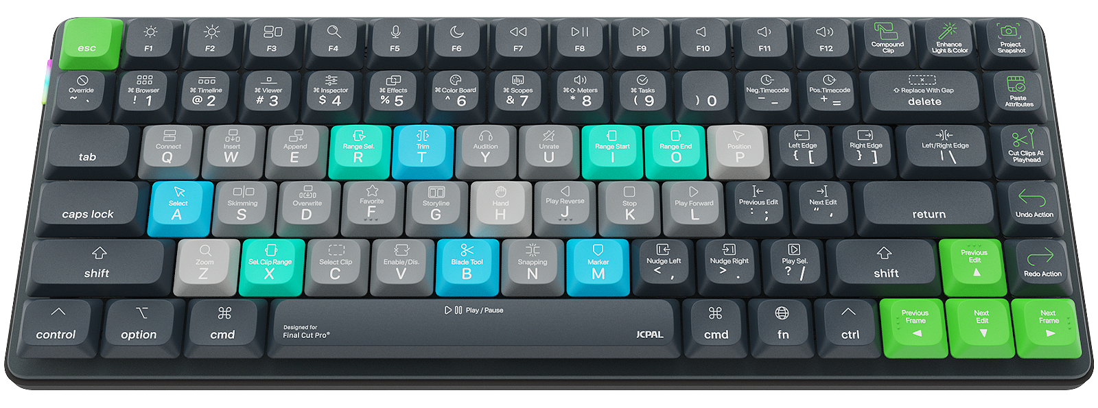 Creativity isn’t one-size-fits-all. That’s why Dash includes 20 swappable keycaps so you can tailor the layout to suit your workflow. Prefer to color grade before cutting? Need quick access to grouping controls? Rearrange and personalize with ease.