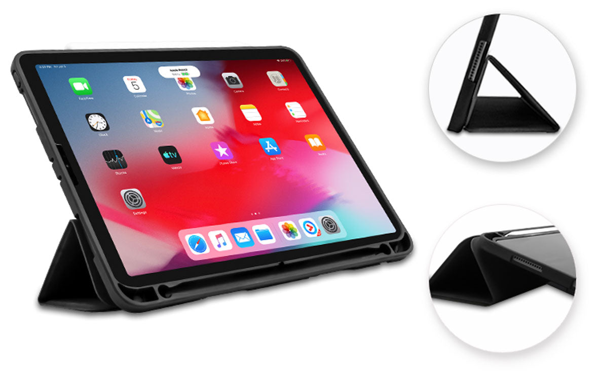 The slim and lightweight DuraPro Protective Folio Case provides elegant protection for your iPad. Featuring a folding stand cover that supports multiple viewing angles, and a flexible and highly protective silicone shell with a compartment for your Apple Pencil, the case provides complete protection without restricting access to the iPads buttons or functions.