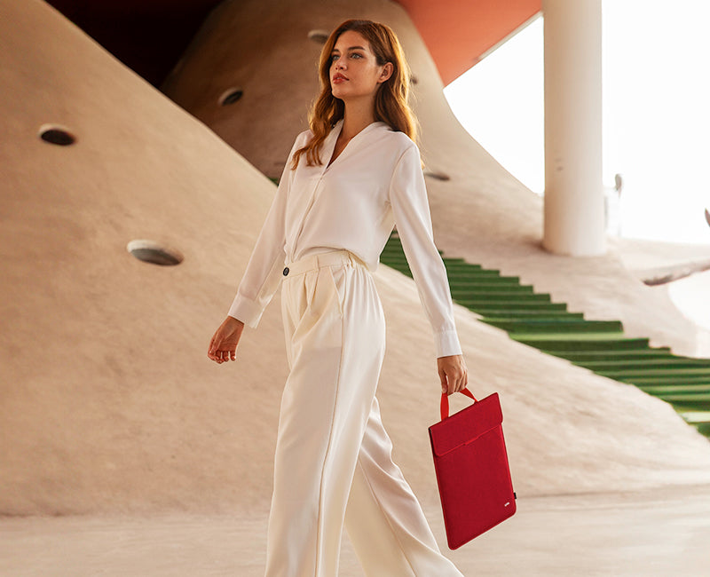 The red color is great! A real attention getting and very stylish. The short handle is perfect for carrying without getting in the way. I hate long handles or shoulder straps that are always in the way This is very sleek. It feels very nice and offers good protection. My M1 MacBook Air fits in nicely as does my iPad Pro 12.9 and pretty much any device that is thin enough. Price is too high, if it goes on sale it would be worth buying.