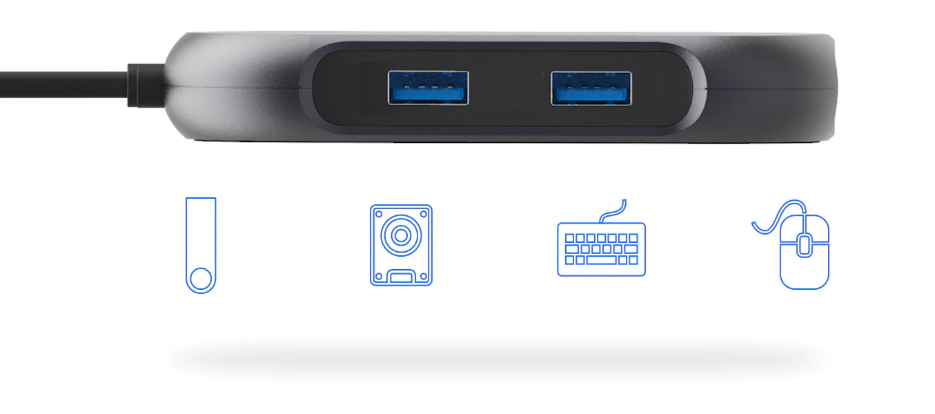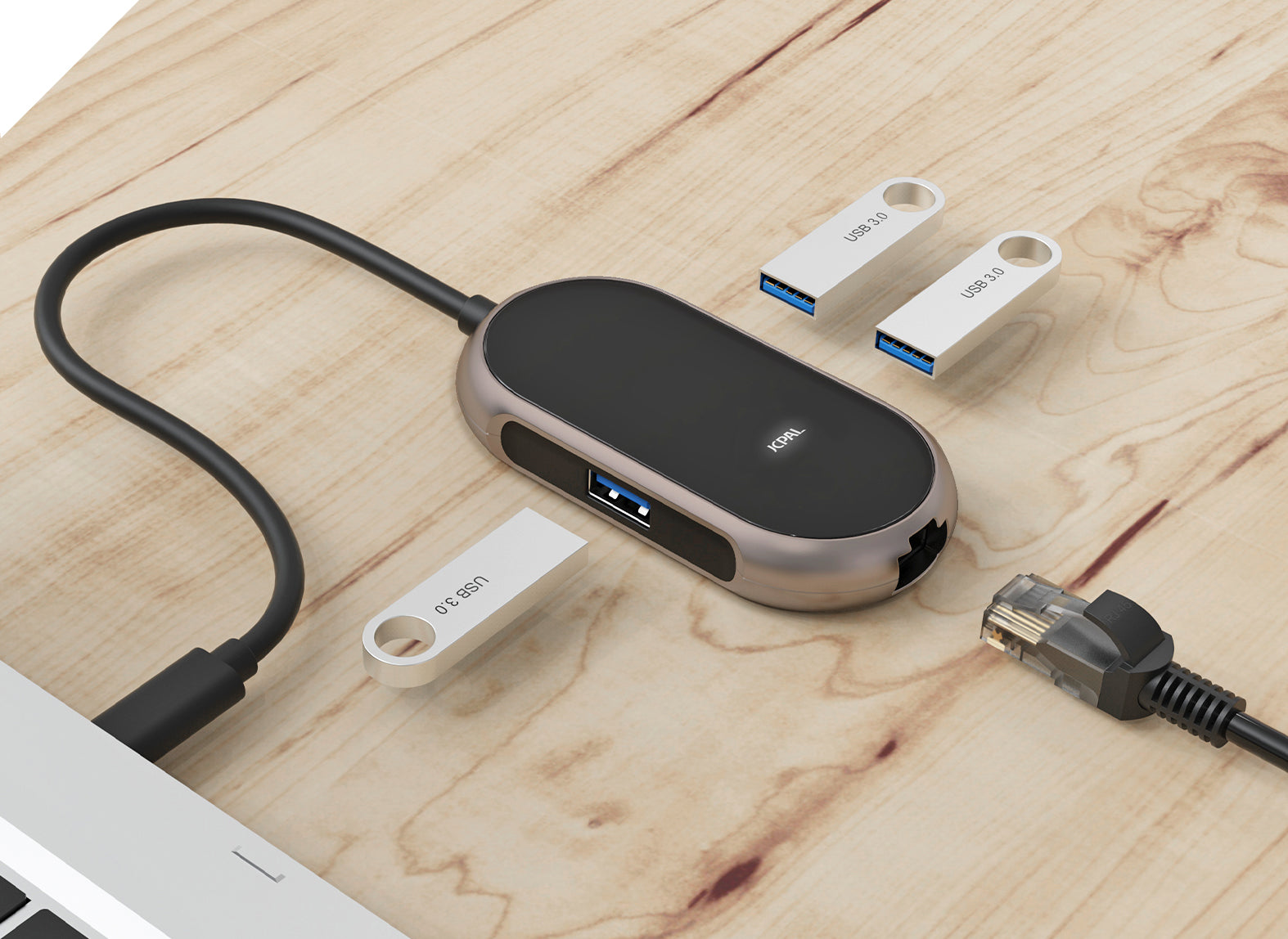 The Onyx USB-C 4-Port Hub is the ultimate compact companion for your MacBook Pro or compatible USB-C device. Featuring three high speed USB 3.0 ports, you can easily connect USB devices such as external hard drives, a keyboard or your smartphone to your device. The ultrafast Ethernet port supports 10/100/1000Mbps network connections, allowing you to browse the internet and download/upload data at faster-than-WiFi speeds.