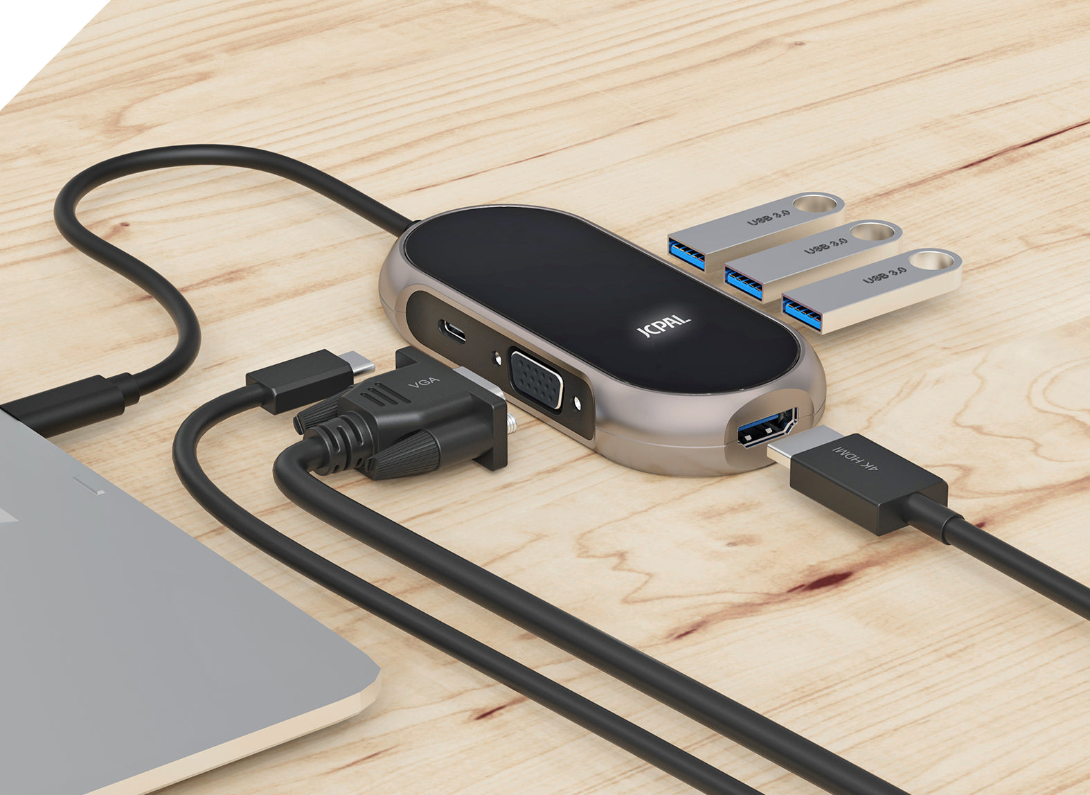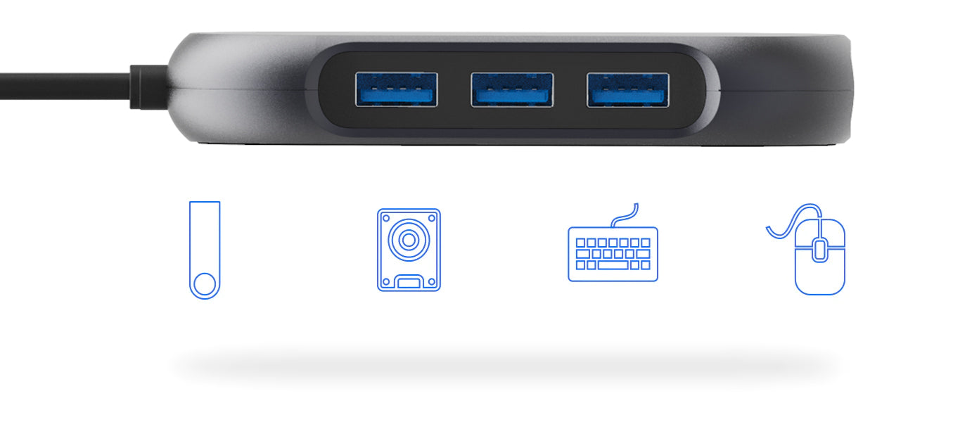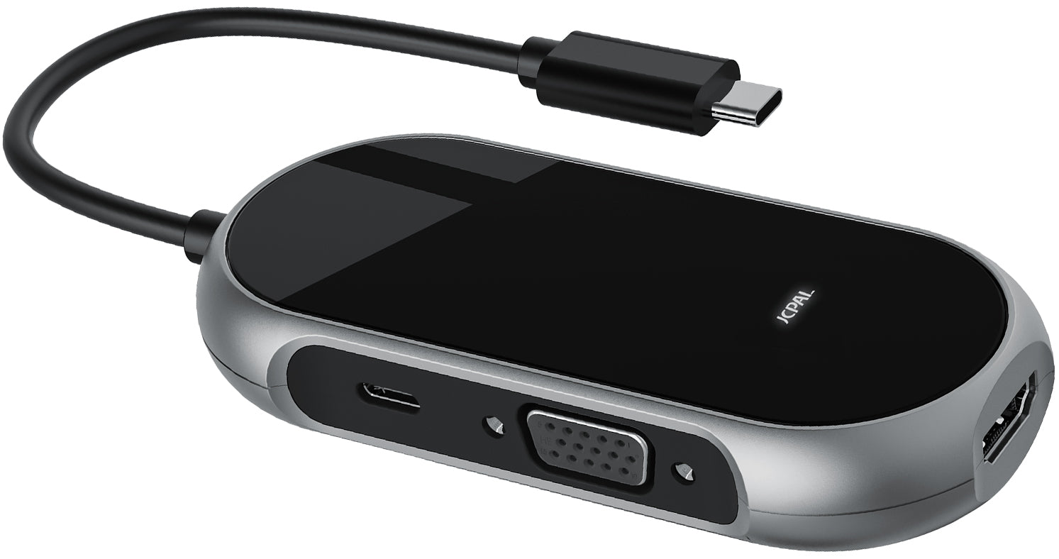 The Onyx USB-C 6-Port Hub is a compact and convenient way to add dual monitor support to your MacBook or USB-C compatible device. Featuring HDMI and VGA ports, you can extend your display across two external monitors for increased efficiency. Three USB ports allows you to connect USB devices such as external hard drives, a keyboard or your smartphone, while the 100W USB-C PD input allows you to keep your laptop charged while you work.