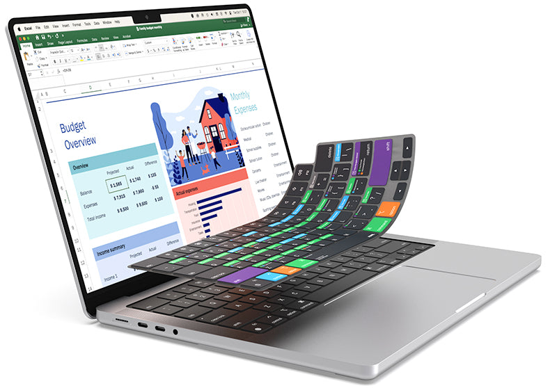 VerSkin is the versatile companion for your laptop, protecting it from liquid and crumb spills while helping teach you the most useful shortcuts for Microsoft Excel. The color-coded shortcut guide is printed directly on the keys providing a quick reference to over 60 frequently used shortcuts, helping to accelerate your workflow and take your spreadsheets to a new level.